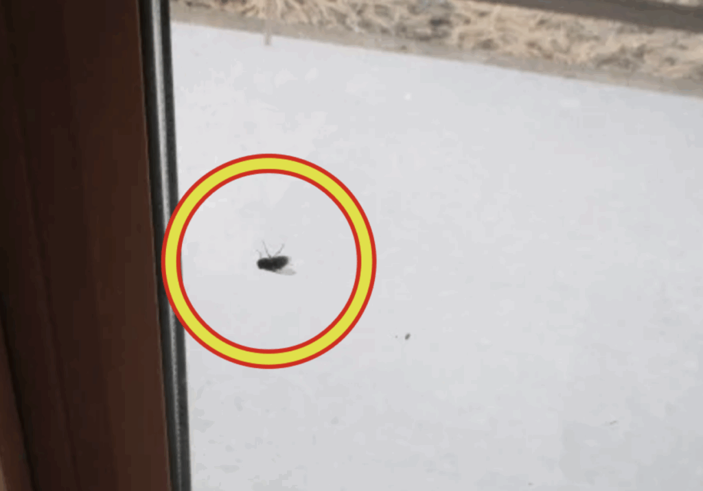 このハエは、透明のガラスに向かって、